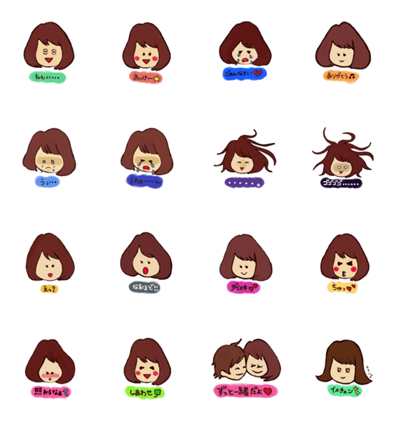 ボブの髪型の女の子によるシンプルな一言スタンプです。
