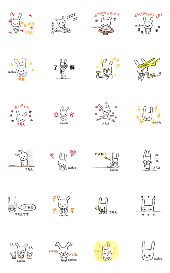 毎日使えるうさぎのさちえちゃんのスタンプだよ。 さちえちゃんへのプレゼントにも最適。 さちえちゃんじゃなくても使ってね!