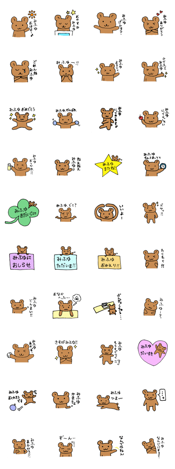 みふゆに送るくまちゃんのスタンプです。 恋人、友達、家族に気持ちを伝えられます。