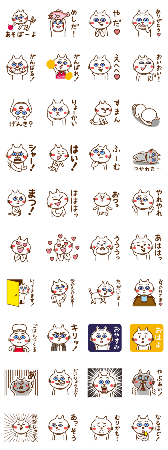 青い目を持った白い猫のスタンプ -LINEスタンプマニア
