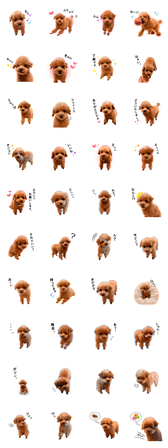 トイプーちゃんの表情豊かなおもしろ挨拶スタンプの実写バージョンです。チワワ、ミニチュアダックス、ポメラニアン、パピヨンなどすべての犬好き達へ。