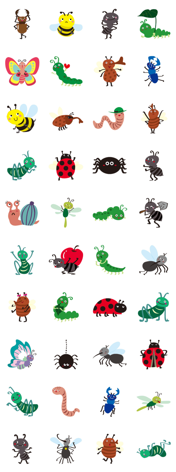 虫たちをキュートに描いたスタンプです。 是非あなたのLINEのお友達にして下さい。