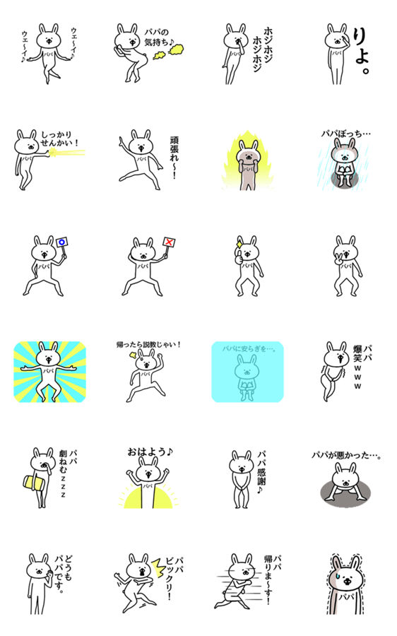 お父さんが使える動く!パパ専用スタンプです。お母さんや子供たちに送って家族の絆を深めて下さい。父の日や誕生日、クリスマス等のプレゼントにも最適です。