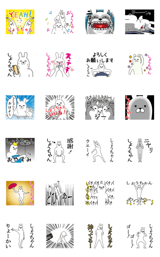 しょうちゃんが使うスタンプです。しょうこ,しょうへい,しょうた,しょうご,しょういち,しょうご,翔子,聖子,祥子,昭子,晶子,紹子,章子など全国のしょう専用のスタンプです