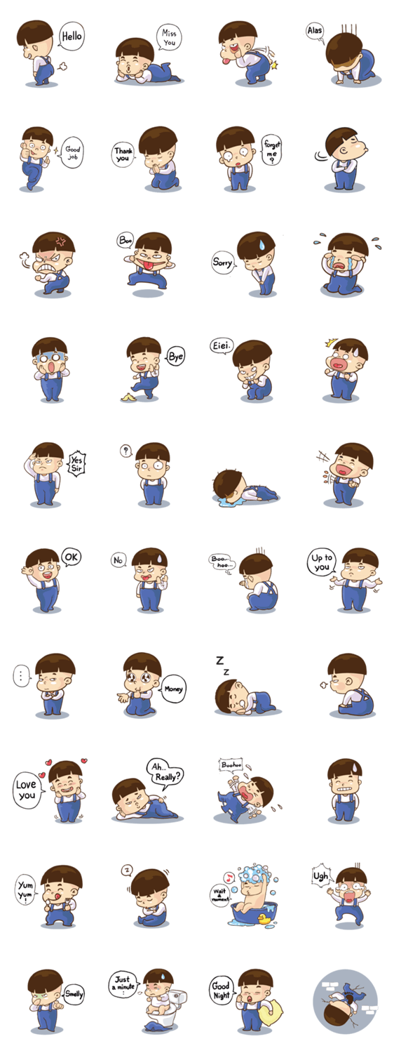 | スタンプ説明 | Hello !! I'm a funny boy with Shell cover haircut. Let me play and run into your chat room please. |