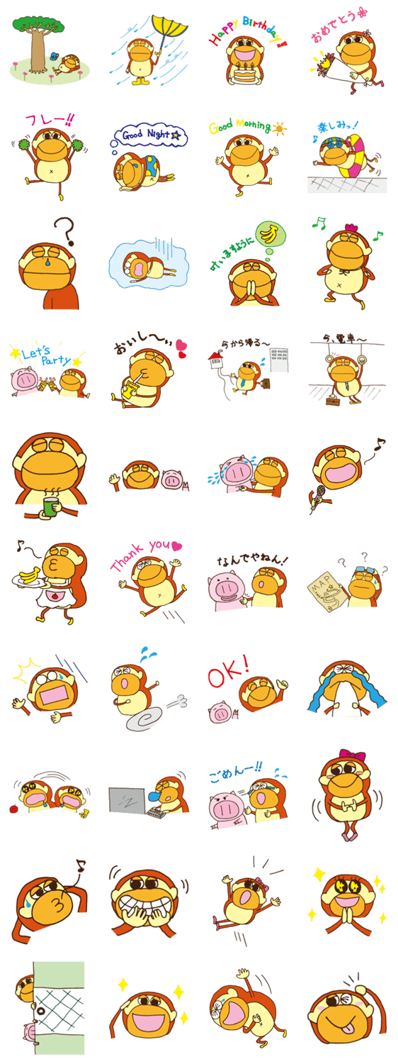 | スタンプ説明 | アフリカから来た留学生のイメナくん。スムージー屋でアルバイト中。がんばり屋のイメナくんの日常がスタンプになって登場! |