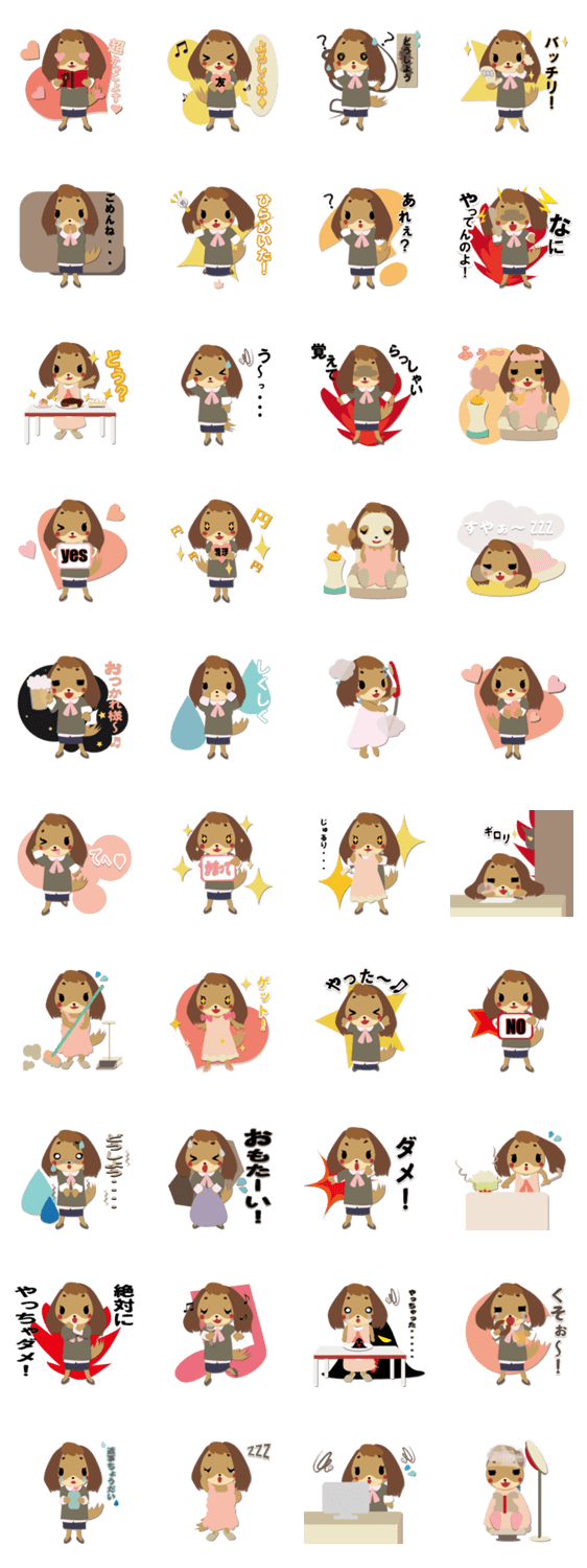 OL犬・ミサは、今日も仕事を頑張っています。プライベートな表現も相手にアピールできるスタンプです。