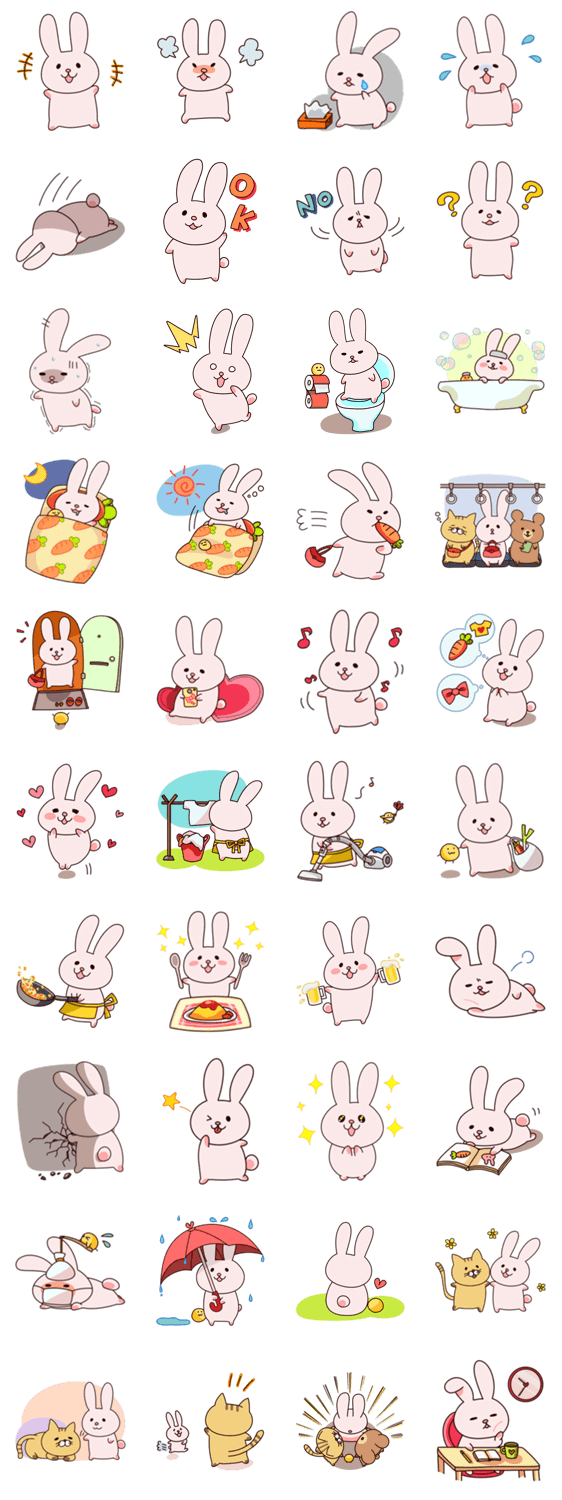 うさぎのうーちゃん。泣いたり笑ったり怒ったり、日常をスタンプに詰め込みました。