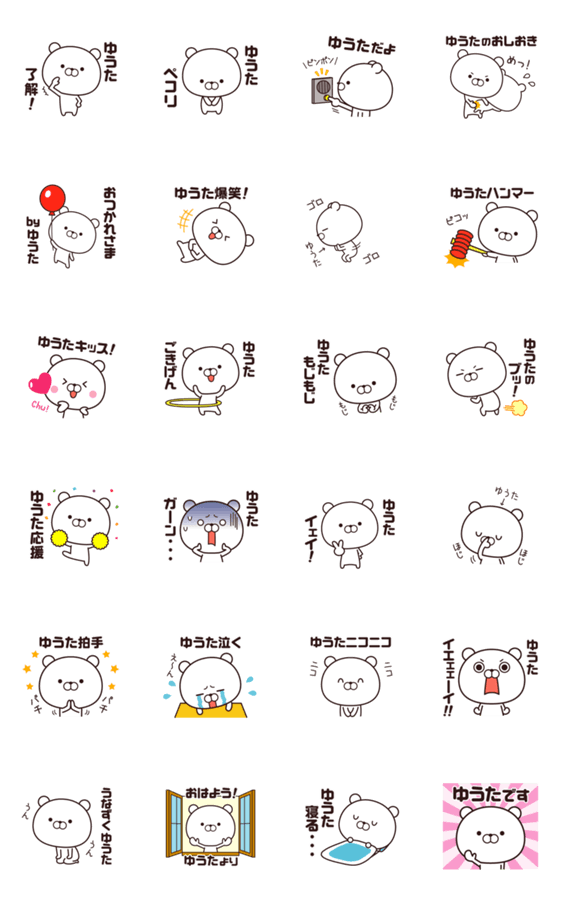 ゆうたくん、ゆうたちゃん、ゆうたさん専用の動く名前スタンプ。雄太、優太、裕太、悠太、祐太、勇太など、自分だけのスタンプです☆
