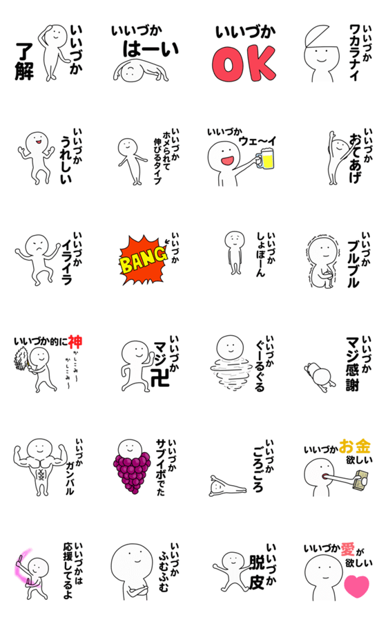 ちょっぴりシュールで素朴なアニメーション名字(苗字)名前スタンプ。 イイヅカ,飯塚,猪塚,飯束,井伊塚,iiduka, etc.