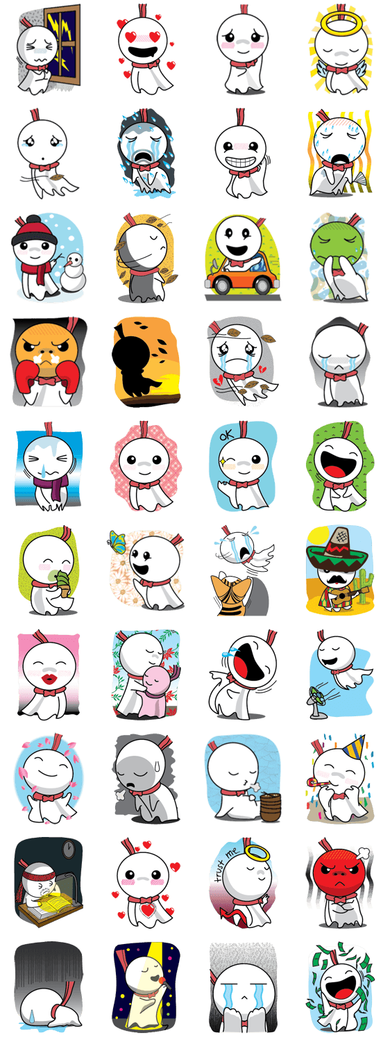 | スタンプ説明 | Oshiro is Teru Teru Bozu, traditional Japanese handmade doll that hanged with yarn to wish for good weather. Now he will accompany your days with his cuteness. |