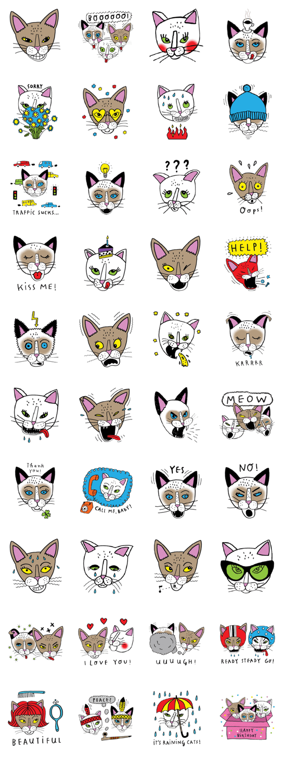 | スタンプ説明 | Join moumi, the Abyssinian Blue with cattitude, and her feline sidekicks, myogi and kikilala, for some daily action fun! |
