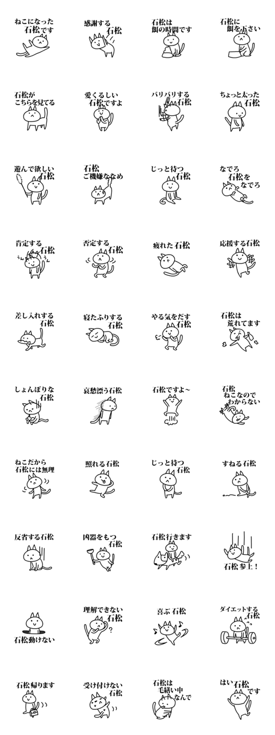 ねこになりました。その最高に愛くるしいかわいい仕草で、日常的に使えるスタンプです。苗字が入った名前スタンプなので毎日使えるんです。ニャー