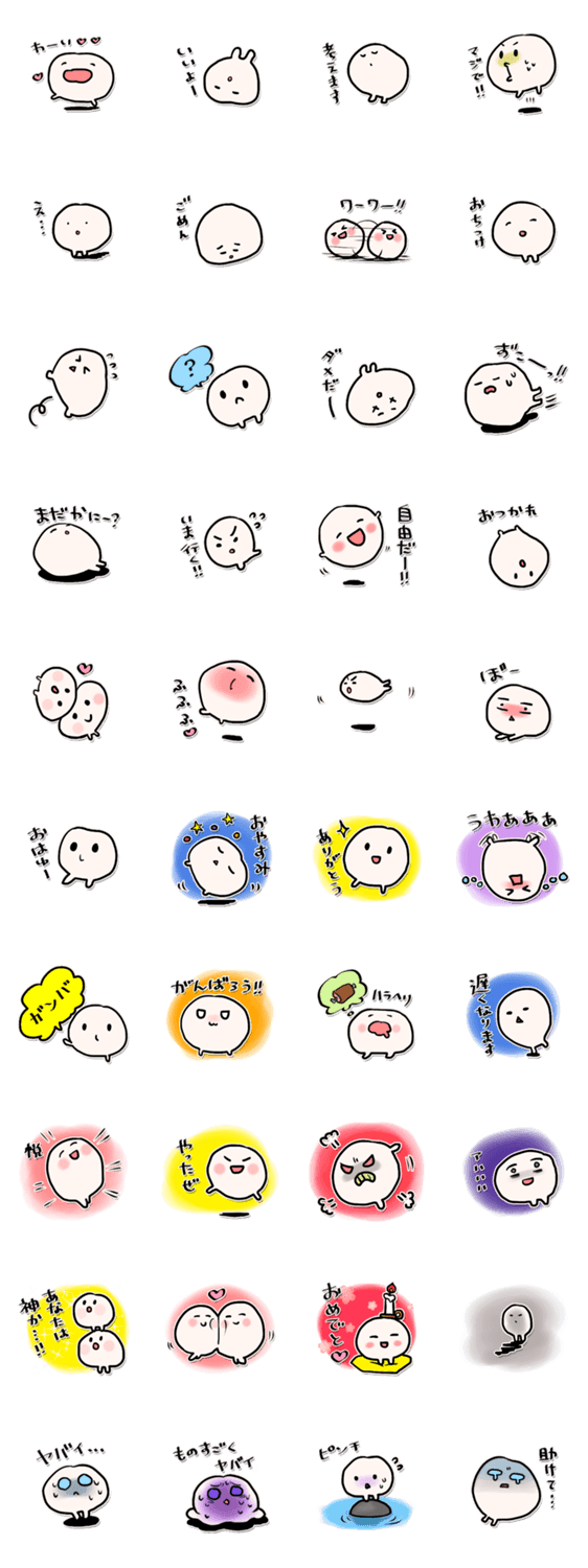 あなぐら生活のやわらかくてふにふにマシュマロみたいな生物のスタンプです。嬉しいとちょっとだけ浮けます。
