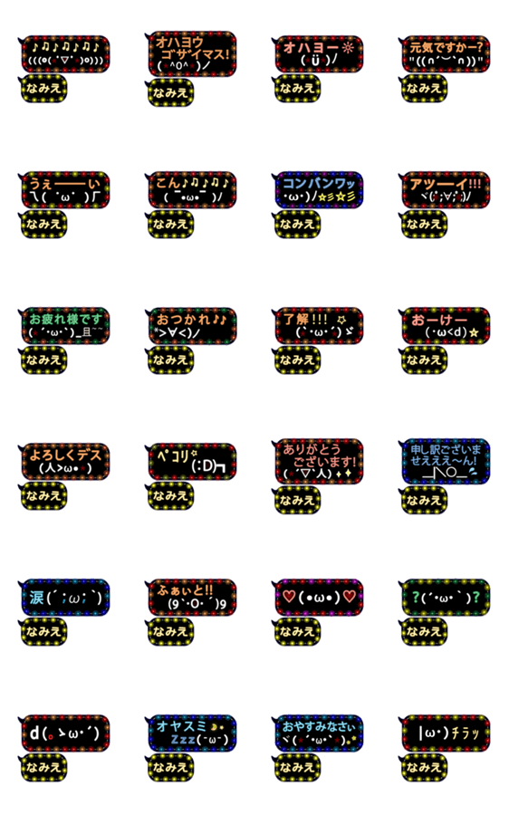 動く顔文字「なみえ」の☆ふきだしイルミ -LINEスタンプマニア