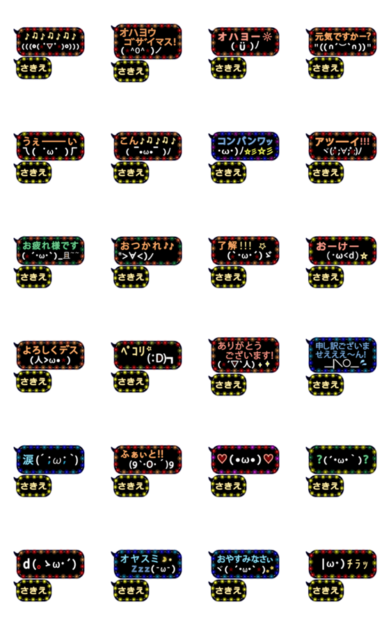 動く顔文字「さきえ」の☆ふきだしイルミ -LINEスタンプマニア
