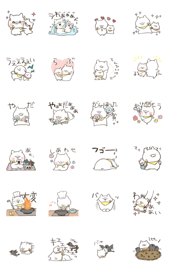 まるで子供のような猫、こどもにゃんこ第9弾のアニメーションスタンプです。今回は弟もたくさん♪