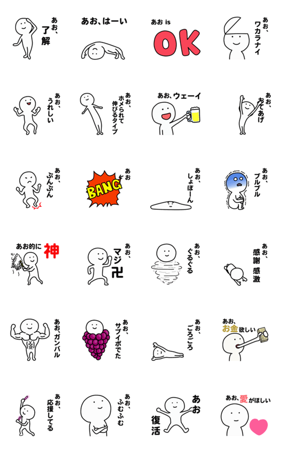 ゆるいシュールなアニメーション苗字(名字)名前スタンプ。 青,碧,阿尾,藍青,粟生,亜桜,蒼,空音,葵,亜夫,亜央,亜生,亜緒,亜雄,亞愛,仰,吾生,扇,アオ, etc.