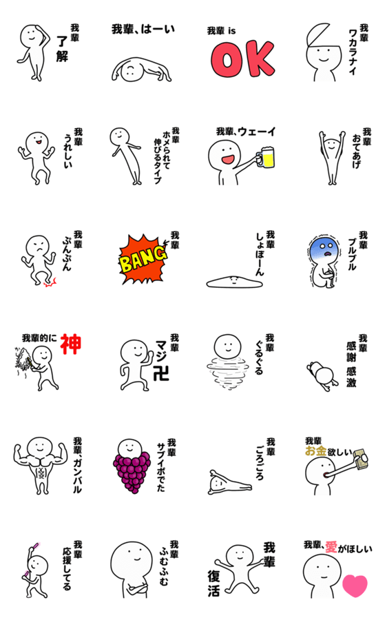 誰でも使えるユルいシュールなアニメーション一人称(自称)名前スタンプ。 吾輩,わがはい,ワガハイ, etc.