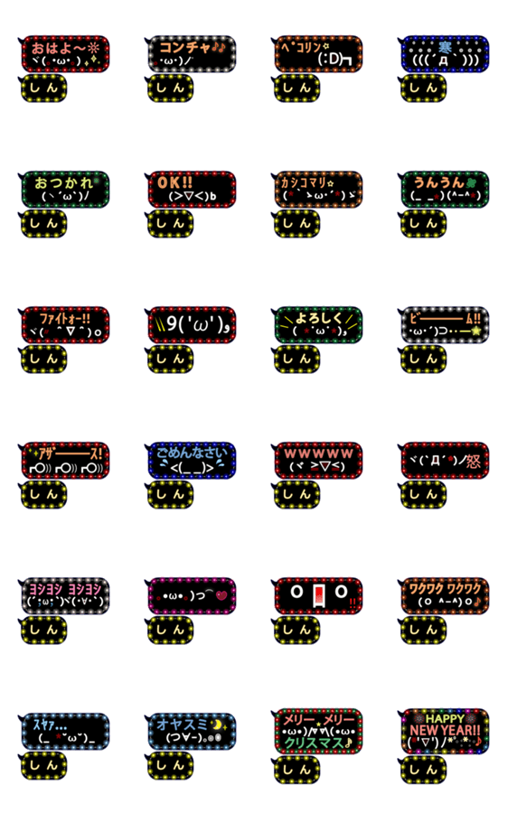 吹き出しの動く顔文字、名前スタンプ「しん」様専用2☆イルミネーションで楽しく♪アニメーション、日常、ネオン☆クリスマス、お正月。イルミ「○○」で検索してね