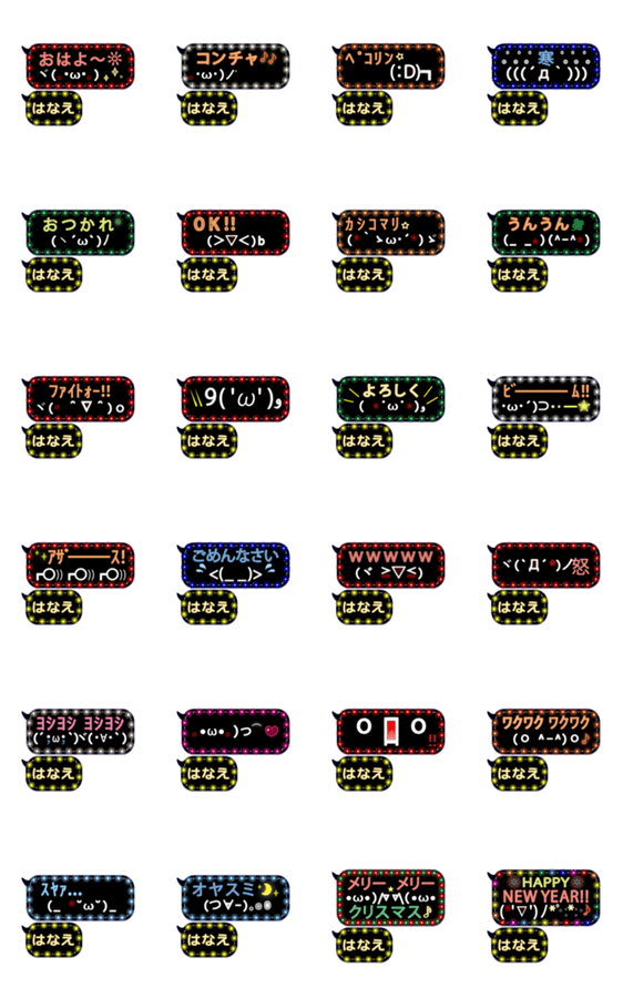 吹き出しの動く顔文字、名前スタンプ「はなえ」様専用2☆イルミネーションで楽しく♪アニメーション、日常、ネオン☆クリスマス、お正月。イルミ「○○」で検索してね