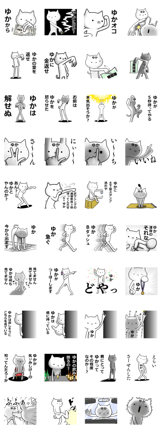 世界のゆか・日本のユカ・Yuka・ユカさん・ゆかチャン・ゆかくんの面白く使いこなせる☆ぬこです。ねこです。ネコです。ウサギもたまに。人とは違う名前スタンプなら。