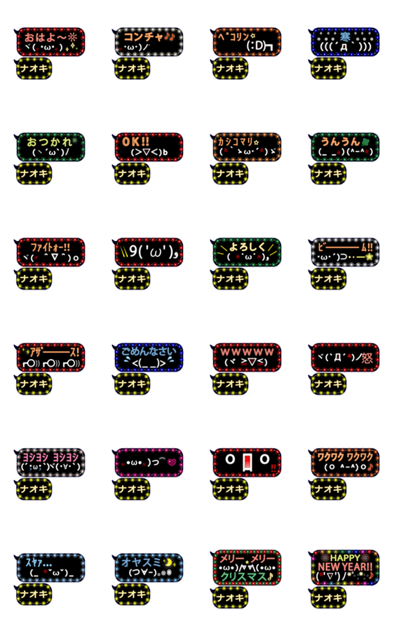 吹き出しの動く顔文字、名前スタンプ「ナオキ」様専用2☆イルミネーションで楽しく♪アニメーション、日常、ネオン☆クリスマス、お正月。イルミ「○○」で検索してね