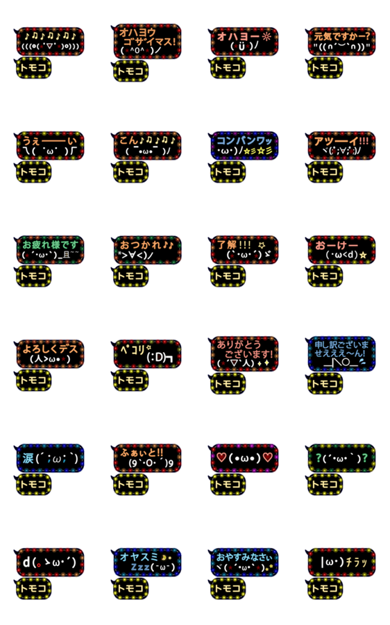 動く顔文字「トモコ」の☆ふきだしイルミ -LINEスタンプマニア
