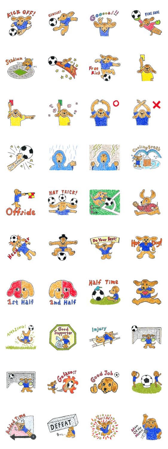 | スタンプ説明 | Football lovers dog. His name is Mog. Hand-drawn pictures.The paintings used are oil pastels. |