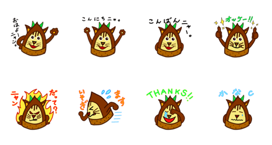 タケノコとネコのコラボキャラ たけにゃんの動くスタンプです。