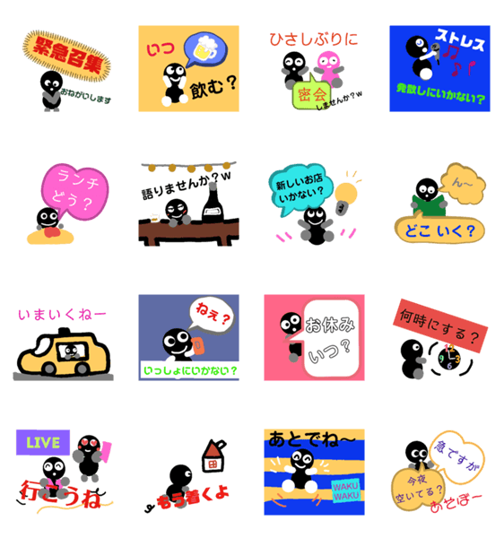 まるまるぼうずの可愛いキャラクターのお誘い専用スタンプです。