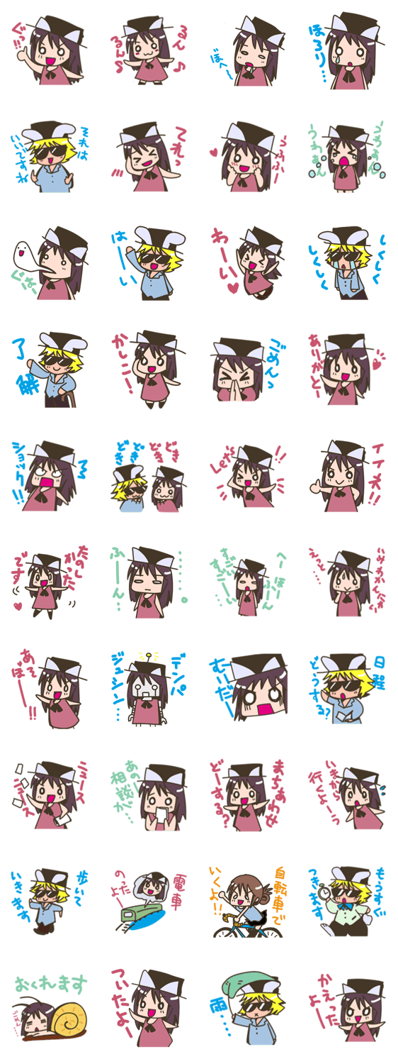 | スタンプ説明 | MOSAIC.WAVの擬人化、みこねことかやうさの「おでかけしよーよ」スタンプ。待ち合わせとか連絡とか、あったら便利だなと思うものを作ってみました♪ |