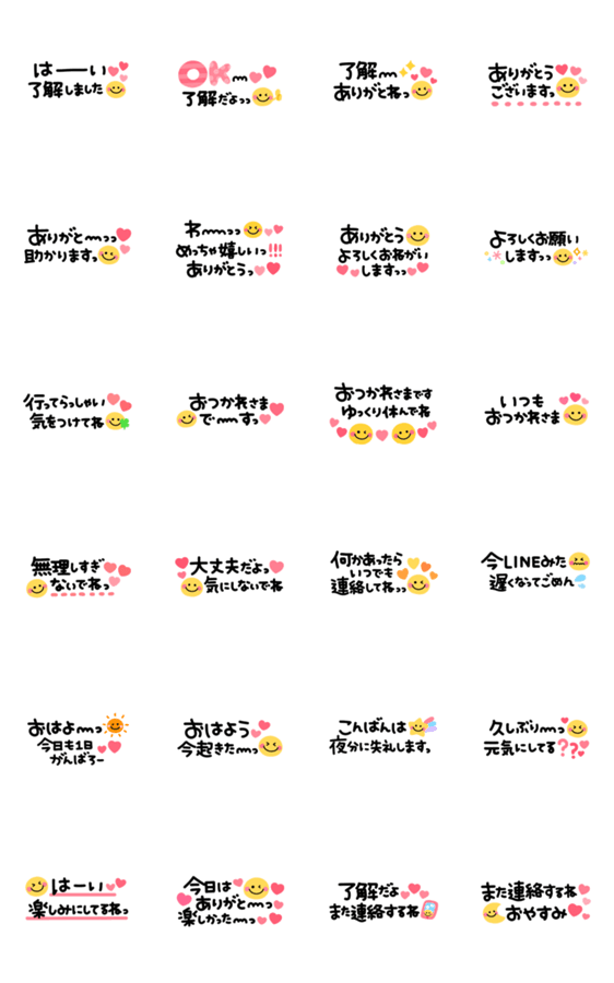 日常でよく使う言葉を長文メッセージスタンプにしました♡ スマイルいっぱい♡文字が可愛く動きます♪