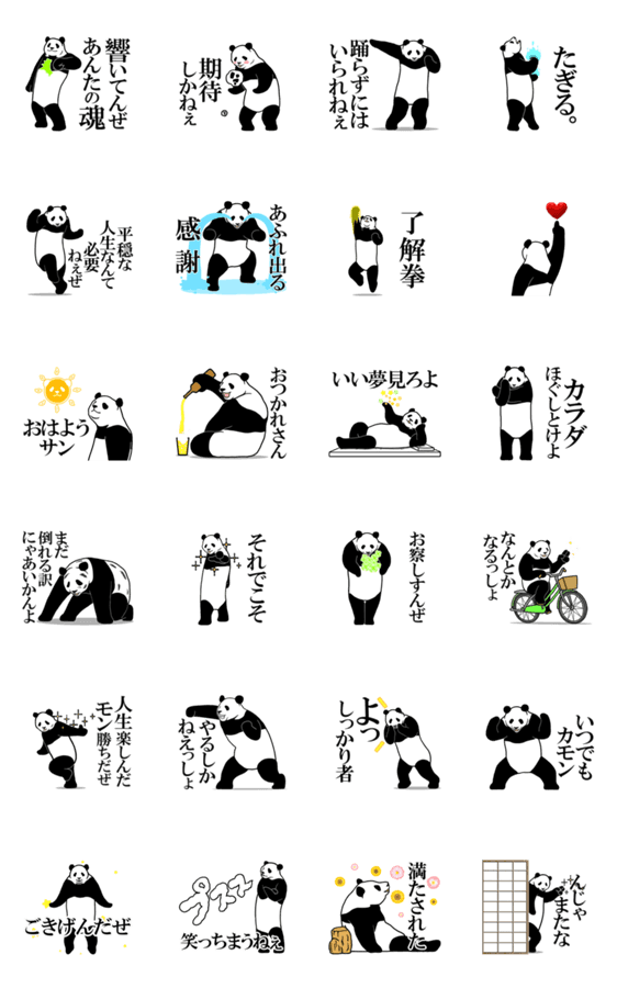 男前なセリフと動きで魅せるパンダのアニメーションスタンプです。