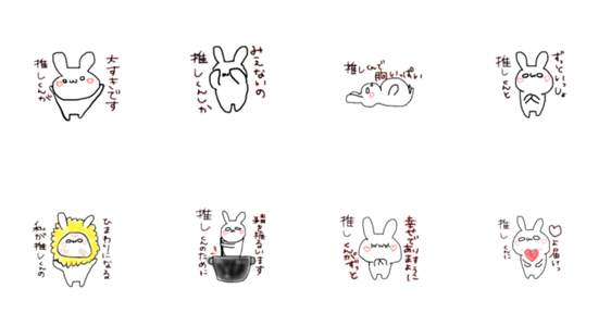 スタンプ説明 白目のうさちゃんが尊い推しを尊いがるおはなし