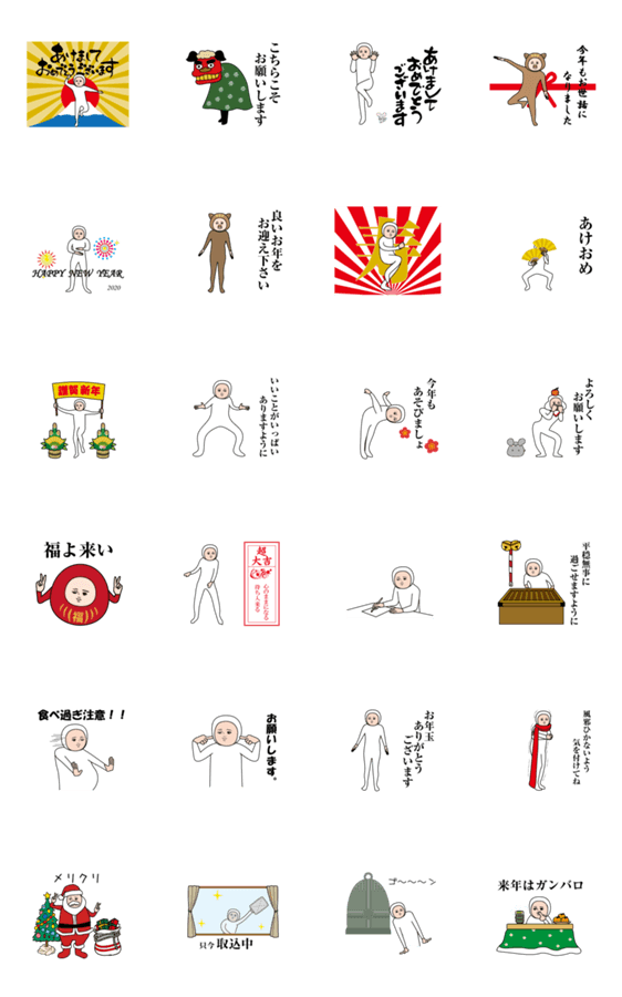 パッと見ダサいけど、昭和味がありかわいくて面白いスタンプ「年末年始」編。令和最初の年越し・年明けの挨拶にお使いくださいませ