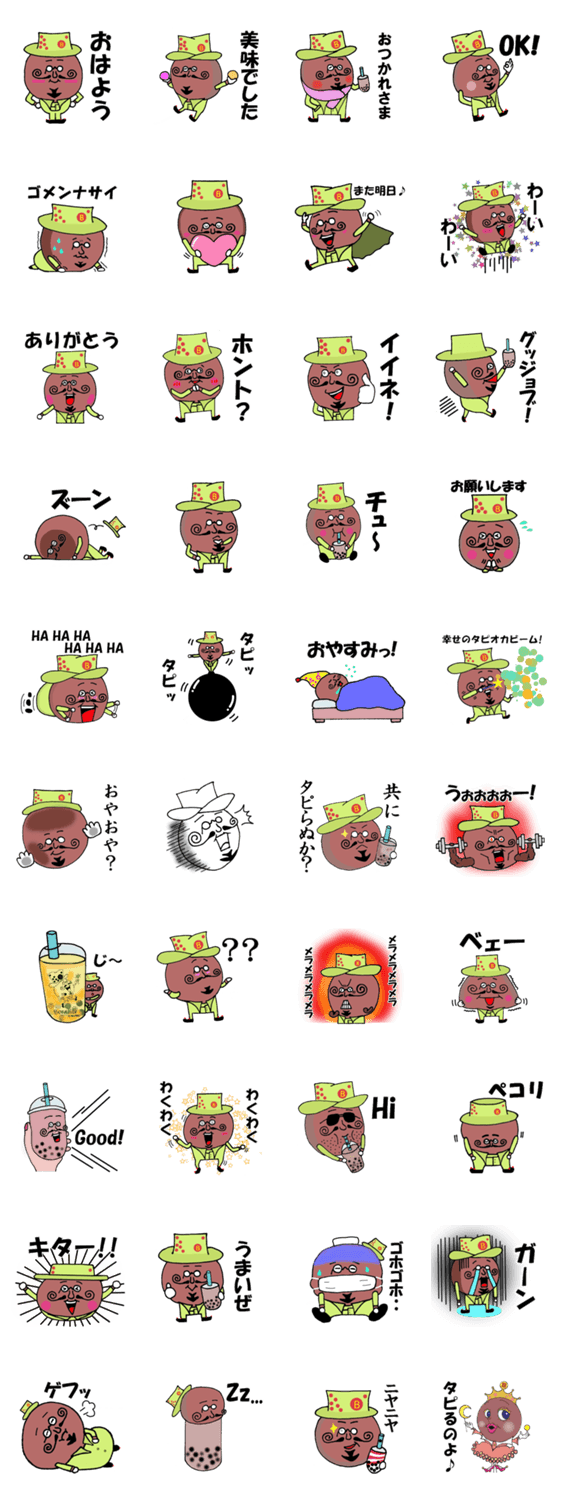 タピオカドリンク専門店BOBA男爵の公式ラインスタンプであるぞ。心は人間で体はタピオカなのだ。
