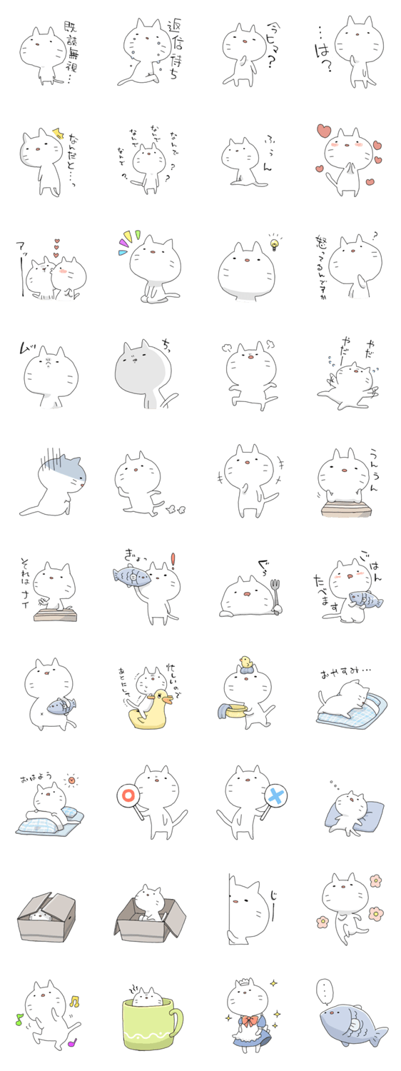 白ネコのあいうえお・・・ってるスタンプ
