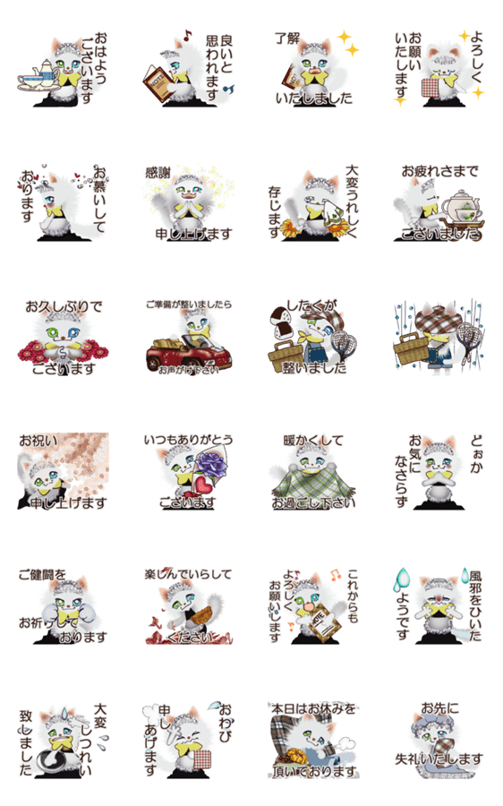 白ネコのあいうえお・・・ってるスタンプ