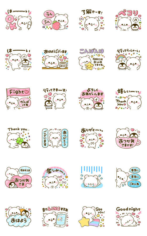 くまくまが可愛く動く♡明るくカラフルなスタンプです♪日常で毎日使いやすい言葉をいっぱい集めました♡