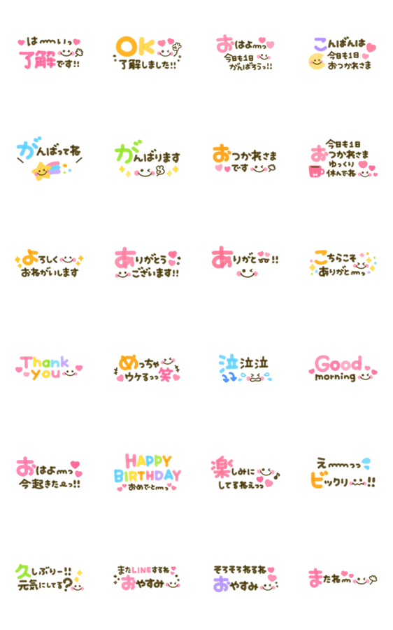 マーカーペンで書いたようなカラフルな文字が動きます♡毎日の会話で使える言葉がいっぱいです♡