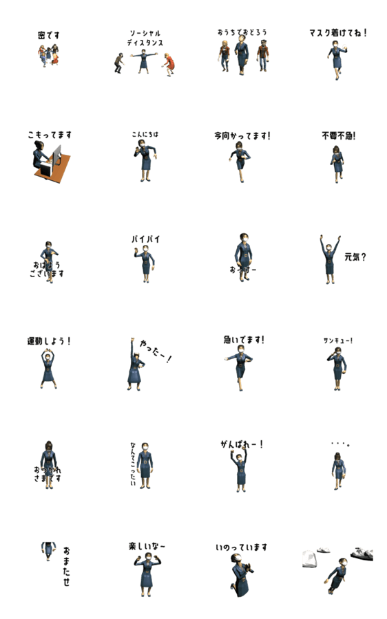 密集団を解散させるアクションゲーム「密です3D」が動くスタンプに!