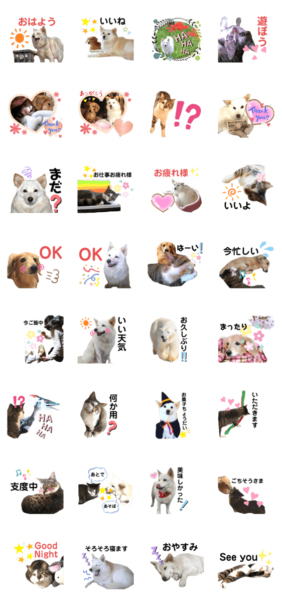 スタンプ説明 犬と猫の仲良しなライフ