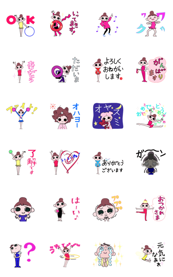 | スタンプ説明 | こちらのスタンプを見つけてくださりありがとうございます。 新体操大好きな女の子がみなさんに代わってメッセージを運びます。たくさんお役にたちますように |