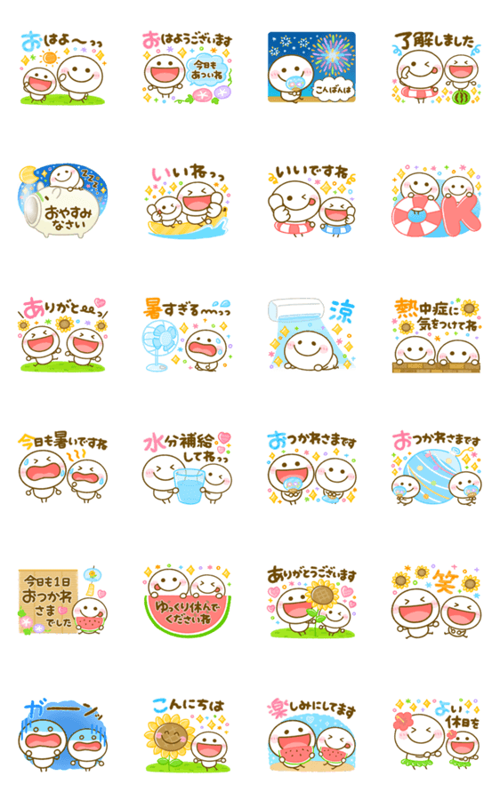 ゆるかわ棒人間の夏の会話に役立つスタンプセットです。 カラフル可愛く動きます♪