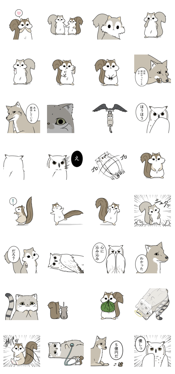 Hush Hush リスとコヨーテ③ -LINEスタンプマニア