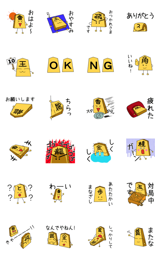 | スタンプ説明 | 普段対局で忙しい将棋の駒たちの日常(非日常?)スタンプです。 |