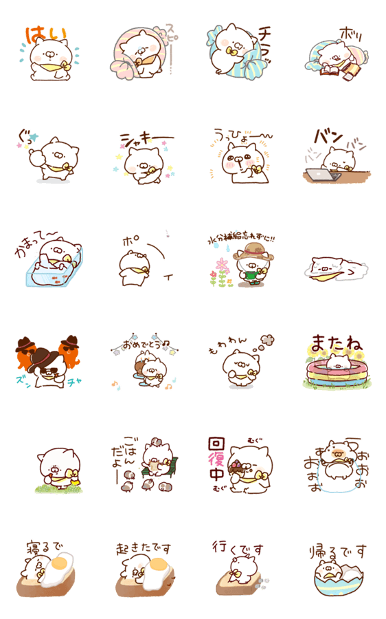 白ネコのあいうえお・・・ってるスタンプ