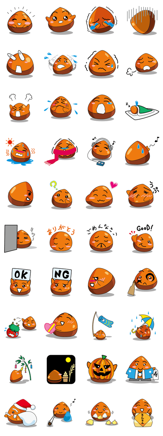 "Kurikinton" which is a noted product of Nakatsugawa-shi, Gifu is made into a character, and I am expressing various expression.