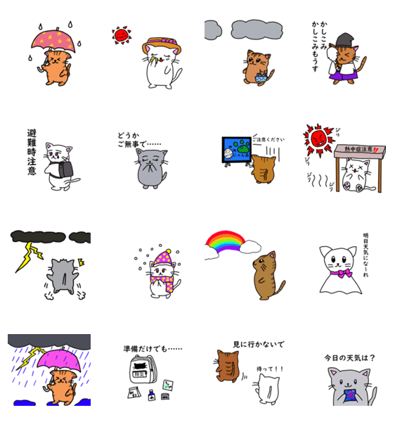 猫シリーズの天気スタンプ -LINEスタンプマニア